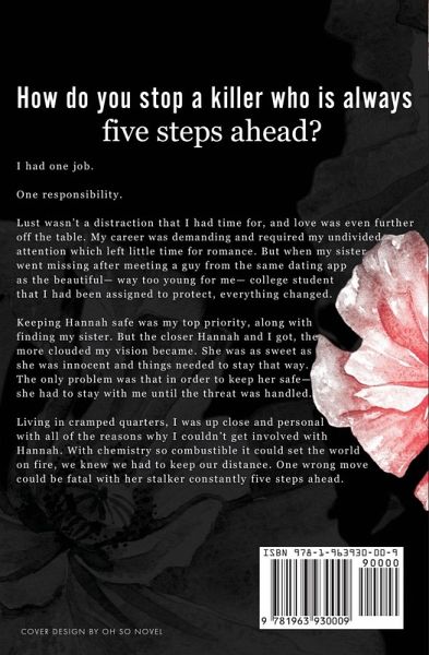 I had one job. One responsibility. Lust wasn't a distraction that I had time for, and love was even further off the table. My career was demanding and required my undivided attention which left little time for romance. But when my sister went missing after meeting a guy from the same dating app as the beautiful- way too young for me- college student that I had been assigned to protect, everything changed. Keeping Hannah safe was my top priority, along with finding my sister. But the closer Hannah and I got, the more clouded my vision became. She was as sweet as she was innocent and things needed to stay that way. The only problem was that in order to keep her safe- she had to stay with me until the threat was handled. Living in cramped quarters, I was up close and personal with all of the reasons why I couldn't get involved with Hannah. With chemistry so combustible it could set the world on fire, we knew we had to keep our distance. One wrong move could be fatal with her stalker constantly five steps ahead.