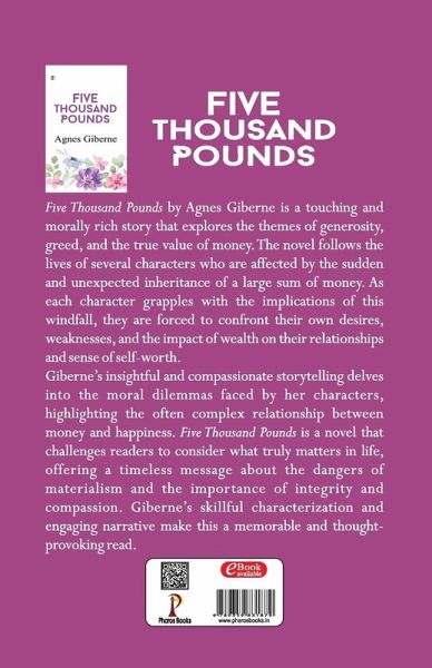 Five Thousand Pounds by Agnes Giberne is a touching and morally rich story that explores the themes of generosity, greed, and the true value of money. The novel follows the lives of several characters who are affected by the sudden and unexpected inheritance of a large sum of money. As each character grapples with the implications of this windfall, they are forced to confront their own desires, weaknesses, and the impact of wealth on their relationships and sense of self-worth. Giberne's insightful and compassionate storytelling delves into the moral dilemmas faced by her characters, highlighting the often complex relationship between moncy and happiness. Five Thousand Pounds is a novel that challenges readers to consider what truly matters in life, offering a timeless message about the dangers of materialism and the importance of integrity and compassion. Giberne's skillful characterization and engaging narrative make this a memorable and thought- provoking read.