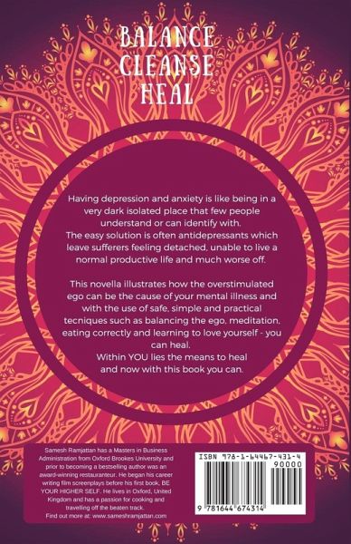 Having depression and anxiety is like being isolated in a very dark place that few people understand or can identify with. The easy solution is often antidepressants which leave sufferers feeling detached, unable to live a normal productive life and much worse off. This novella illustrates how the overstimulated ego can be the cause of this mental illness and with the use of safe, simple and practical techniques such as balancing the ego, meditation, eating correctly and learning to love yourself - you can heal. Within YOU lies the means to heal and now with this book you can.