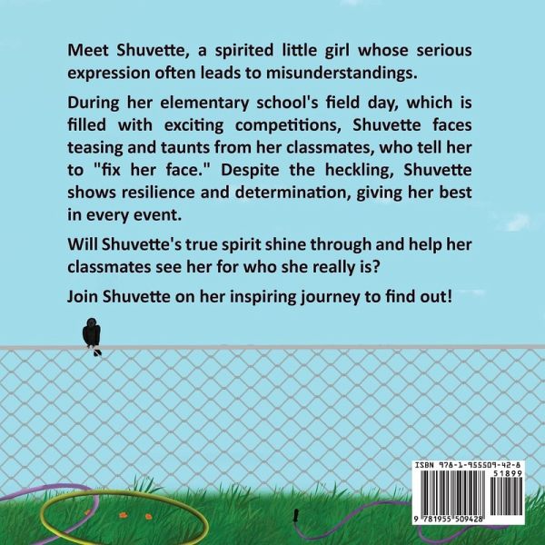 Forty four paged, colorful and paperback children's book written and illustrated by women of color. Fix Your Face is a children's book story based on the author's lived experience: Meet Shuvette, a spirited little girl whose serious expression often leads to misunderstandings. During her elementary school's field day, which is filled with exciting competitions, Shuvette faces teasing and taunts from her classmates, who tell her to "fix her face." Despite the heckling, Shuvette shows resilience and determination, giving her best in every event. Will Shuvette's true spirit shine through and help her classmates see her for who she really is? Join Shuvette on her inspiring journey to find out!
