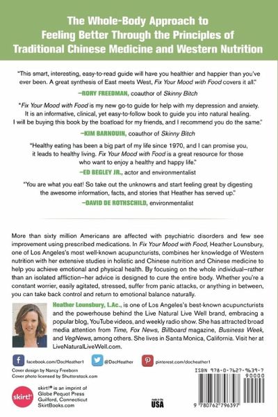 More than sixty million Americans are affected with psychiatric disorders and few see improvement using prescribed medications. Fix Your Mood with Food uses the methods practiced in Chinese medicine to improve mood naturally. By focusing on the whole individual-rather than an isolated affliction—it is designed to cure the entire body. In this approachable book, Heather Lounsbury, one of Los Angeles' most well-known acupuncturists, draws from her own personal and clinical experiences as well as her extensive studies in holistic and Chinese nutrition and Chinese medicine to help you achieve emotional and physical health. Readers will be empowered by natural options for mood improvement with dietary insight based on ancient healing practices. Whether you’re a constant worrier, easily agitated, stressed, suffer from panic attacks, or anything in between, you can take back control and return to emotional balance. Lounsbury guides readers to elevate mood naturally as they improve (and prevent) a variety of physical ailments, including heart conditions, high cholesterol, digestive issues, headaches, and energy problems. Includes comprehensive food charts and health tips.