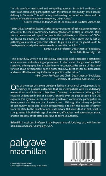 'Brian Dill's Fixing the African State is a long overdue and refreshingly unsentimental account of the rise of community-based organizations (CBOs) in Tanzania. Dill's fair and even-handed report documents the legitimate contributions of CBOs, but leaves no doubt that they are boxed in by an African state that is just as pathological as ever. Anyone who intends to go to a slum in the global South to teach people to help themselves needs to read this book first.' - Samuel Cohn, Professor, Department of Sociology, Texas A&M University, USA