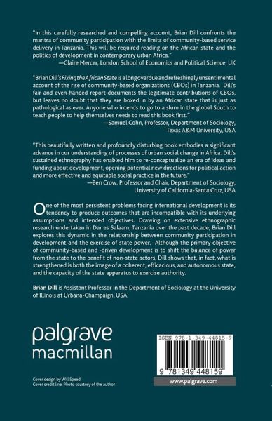 'Brian Dill's Fixing the African State is a long overdue and refreshingly unsentimental account of the rise of community-based organizations (CBOs) in Tanzania. Dill's fair and even-handed report documents the legitimate contributions of CBOs, but leaves no doubt that they are boxed in by an African state that is just as pathological as ever. Anyone who intends to go to a slum in the global South to teach people to help themselves needs to read this book first.' - Samuel Cohn, Professor, Department of Sociology, Texas A&M University, USA
