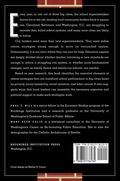 Every year, in one out of three big cities, the school superintendent leaves his or her job, sending local community leaders back to square one. Cleveland, Baltimore, and Washington, D.C., are struggling to recreate their failed school systems, and many more cities are likely to follow. City leaders need more than new superintendents. They need stable reform strategies strong enough to move an entrenched system. Unfortunately, it is not clear where they can turn for help. Education experts are deeply divided about whether teacher retraining or new standards are enough to reform a struggling city system, or whether more fundamental changes, such as family choice and family-run schools, are needed. Based on new research, this book identifies the essential elements of reform strategies that can transform school performance in big cities beset by poverty, social instability, racial isolation, and labor unrest. It also suggests ways that local leaders can assemble the necessary funding and political support to make such strategies work.