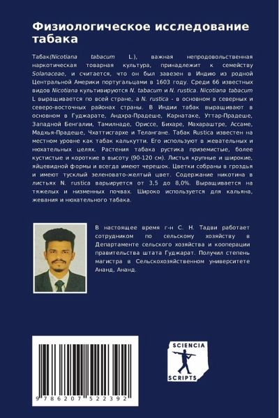 Tabak(Nicotiana tabacum L.), wazhnaq neprodowol'stwennaq narkoticheskaq towarnaq kul'tura, prinadlezhit k semejstwu Solanaceae, i schitaetsq, chto on byl zawezen w Indiü iz rodnoj Central'noj Ameriki portugal'cami w 1603 godu. Sredi 66 izwestnyh widow Nicotiana kul'tiwiruütsq N. tabacum i N. rustica. Nicotiana tabacum L wyraschiwaetsq po wsej strane, a N. rustica - w osnownom w sewernyh i sewero-wostochnyh rajonah strany. V Indii tabak wyraschiwaüt w osnownom w Gudzharate, Andhra-Pradeshe, Karnatake, Uttar-Pradeshe, Zapadnoj Bengalii, Tamilnade, Orisse, Bihare, Maharashtre, Assame, Madh'q-Pradeshe, Chhattisgarhe i Telangane. Tabak Rustica izwesten na mestnom urowne kak tabak kal'kutti. Ego ispol'zuüt w zhewatel'nyh i nühatel'nyh celqh. Rasteniq tabaka rustika prizemistye, bolee kustistye i korotkie w wysotu (90-120 sm). List'q krupnye i shirokie, qjcewidnoj formy i wsegda imeüt chereshok. Cwetki sobrany w grozd'q i imeüt tusklyj zelenowato-zheltyj cwet. Soderzhanie nikotina w list'qh N. rustica war'iruetsq ot 3,5 do 8,0%. Vyraschiwaetsq na tqzhelyh i nizmennyh pochwah. Shiroko ispol'zuetsq dlq kal'qna, zhewaniq i nühatel'nogo tabaka.