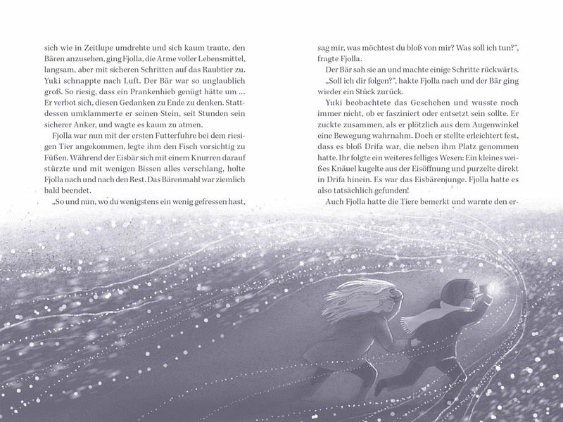 Doch der Winter verändert sich: Frostige Stürme peitschen über die Schneelande und überziehen alles mit einer unheilvollen Eisschicht, die Erde bebt - und immer wieder nähern sich Eisbären dem Ort. Fjolla spürt eine geheimnisvolle Verbindung zu den mächtigen Tieren. Aber erst zusammen mit ihren Freunden Yuki und Aubin kommt sie einem alten magischen Geheimnis auf die Spur, das einst ihre Familien entzweite. Die Schneelande sind in großer Gefahr und nur gemeinsam können die dreisich der Bedrohung zu stellen ...
