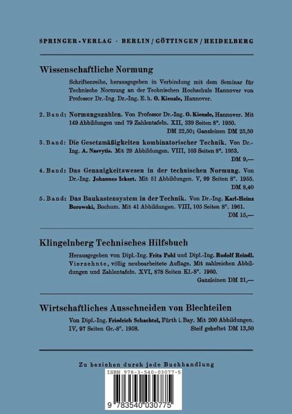 Die Gebilde der Technik sind durch Stoff und Form bestimmt. Wenn wir hinsichtlich der Formgebung hauptsachlich an ihre funktionellen Z'wecke zu denken pfiegen, so bleibt doch giiltig, daB im Grund aIle Formgebung auf geometrischen Gegebenheiten beruht, ja, diese be herrschen oft genug noch die Endform eines Gebildes, wie z. B. bei schraubigen und evolventischen FHichen. Es erscheint darum nur als naturlich, die Geometrie behutsam auch in das Normungsdenken einzu beziehen, das dadurch selbst einen unanfechtbaren Ruckhalt gewinnen kann. Wir gestehen, daB wir hierauf nicht aus "Normungseifer" gekommen sind, sondern unter dem Eindruck einer bestimmten geometrischen Auf gabe von bemerkenswerter technischer Reichweite, der Frage namlich, welche geometrischen Formen die Eigenschaft haben, sich in kongruenter Wiederholung lUckenlos aneinanderzuschlieBen (wie Quadrate oder regel maBige Sechsecke). Von dieser zunachst a bstrakt gesteIlten Aufga be sind sogleich die beiden Nutzanwendungen zu nennen: einmal der Aufbau einer Gesamtfiache aus kongruenten Flachenteilen, z. B. eines Bodens aus Fliesen, und zum andern die Zerlegung einer Gesamtfiache in Gestalt von fiachem Halbzeug, wie Blech oder Papier, in gleiche Werkstucke. Jenem Aneinanderpassen ohne zu fUllende Lucken entspricht hier das Trennen ohne wegzuwerfende Abfalle. Diese Aufgabe, die in der Mathematik nach D. HILBERT (1900 [2]) das "regulare Parkettierungsproblem" genannt wird, hat ihre voIlstandige Losung fur aIle Formen der luckenlosen Aufteilung in einem System von 28 Konstruktionsgesetzen, die der eine Verfasser (H.) 1932 fand. In diesem System liegt somit eine sehr weitgreifende Grundnorm vor.