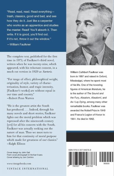 The complete text of Faulkner's third novel, published for the first time in 1973, appeared with his reluctant consent in a much cut version in 1929 as Sartoris.