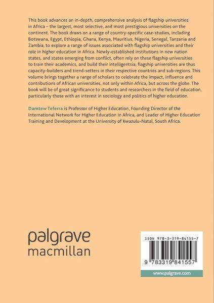This book advances an in-depth, comprehensive analysis of flagship universities in Africa - the largest, most selective, and most prestigious universities on the continent. The book draws on a range of country-specific case-studies, including Botswana, Egypt, Ethiopia, Ghana, Kenya, Mauritius, Nigeria, Senegal, Tanzania and Zambia, to explore a range of issues associated with flagship universities and their role in higher education in Africa. . Newly-established institutions in new nation states, and states emerging from conflict, often rely on these flagship universities to train their academics, and build their intelligentsia; flagship universities are thus capacity-builders and trend-setters in their respective countries and sub-regions. This volume brings together a range of scholars to celebrate the impact, influence and contributions of African universities, not only within Africa, but across the globe The book will be of great significance to students and researchers in the field of education, particularly those with an interest in sociology and politics of higher education.