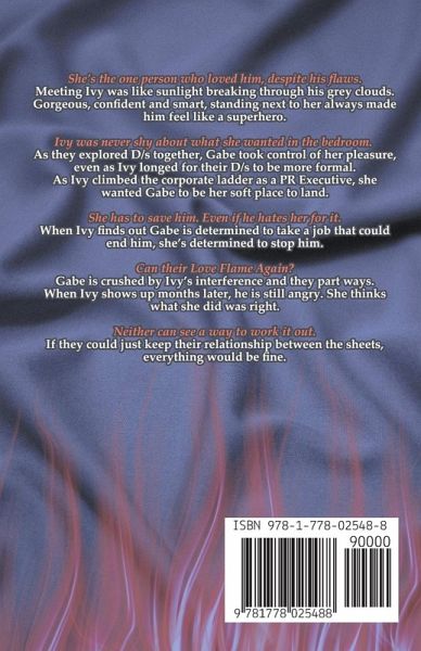 She's the one person who loved him, despite his flaws. Meeting Ivy was like sunlight breaking through his grey clouds. Gorgeous, confident and smart, standing next to her always made him feel like a superhero. Ivy was never shy about what she wanted in the bedroom. As they explored D/s together, Gabe took control of her pleasure, even as Ivy longed for their D/s to be more formal. As Ivy climbed the corporate ladder as a PR Executive, she wanted Gabe to be her soft place to land. She has to save him. Even if he hates her for it. When Ivy finds out Gabe is determined to take a job that could end him, she's determined to stop him. Can their Love Flame Again? Gabe is crushed by Ivy's interference and they part ways. When Ivy shows up months later, he is still angry. She thinks what she did was right. Neither can see a way to work it out. If they could just keep their relationship between the sheets, everything would be fine.