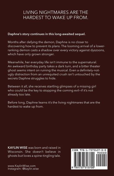 Daphne's story continues in this long-awaited sequel. Months after defying the demon, Daphne is no closer to discovering how to prevent its plans. The looming arrival of a lower-ranking demon casts a shadow over every victory against dyszoons, which have only grown stronger. Meanwhile, her everyday life isn't immune to the supernatural. An awkward birthday party takes a dark turn, and a bitter theater ghost seems intent on ruining the musical. Even a definitely-not-ugly distraction from an unrequited crush isn't untouched by the secrets Daphne struggles to hide. Between it all, she receives startling glimpses of a missing girl who could be the key to stopping the coming evil-if it's not already too late. Before long, Daphne learns it's the living nightmares that are the hardest to wake up from.