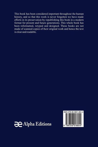 This book has been considered important throughout the human history, and so that this work is never forgotten we have made efforts in its preservation by republishing this book in a modern format for present and future generations. This whole book has been reformatted, retyped and designed. These books are not made of scanned copies and hence the text is clear and readable.