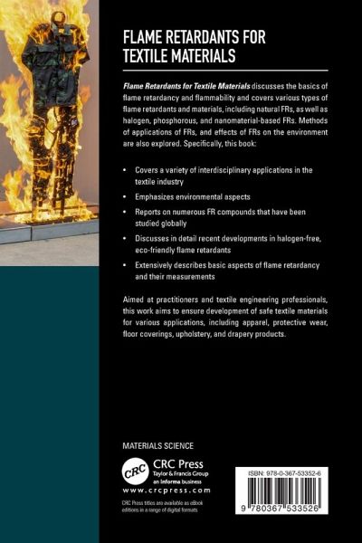 This book focuses on flame retardants (FR) for textile materials. It discusses basics of flame retardancy and flammability and covers various types of flame retardants and materials, including natural FRs, halogen, phosphorous, and nanomaterial-based FRs. This book also discusses methods of applications of FRs and discusses FRs and the environment.