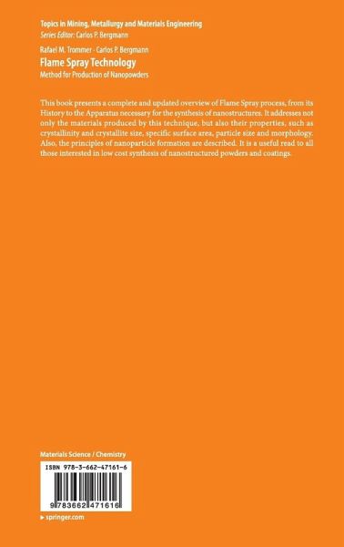 This book presents a complete and updated overview of Flame Spray process, from its History to the Apparatus necessary for the synthesis of nanostructures. It addresses not only the materials produced by this technique, but also their properties, such as crystallinity and crystallite size, specific surface area, particle size and morphology. Also, the principles of nanoparticle formation are described. It is a useful read to all those interested in low cost synthesis of nanostructured powders and coatings.