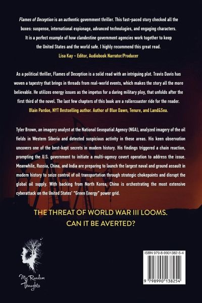 An imagery analyst at the National Geo-Spatial Agency (NGA), analyzing imagery of the oil fields in Western Siberia, identifies strange behavior in the oil fields. His keen eye uncovers the best-kept secret in modern history. His intelligence started a chain reaction, leading to the U.S. government opening a multi-agency clandestine operation. At the same time, Russia, China, and India prepare to conduct the most significant naval and ground assault in modern history (code name Moose) to control the transportation of oil through strategic choke points and stop the free flow of oil on land and…mehr