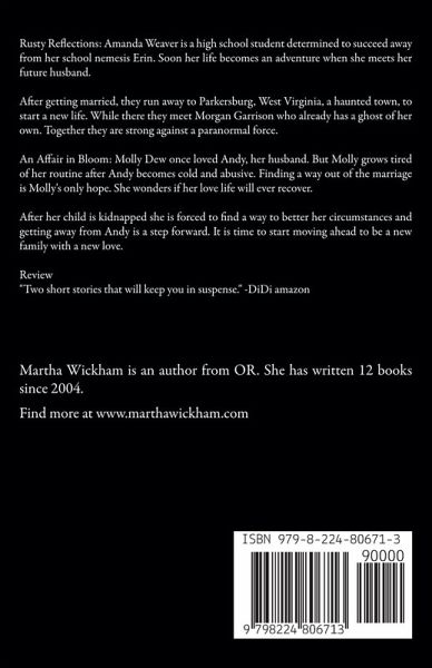 Rusty Reflections: Amanda Weaver is a high school student determined to succeed away from her school nemesis Erin. Her life becomes an adventure when she meets her future husband. After getting married, they run away to Parkersburg, West Virginia, a haunted town, to start a new life. While there they meet Morgan Garrison who already has a ghost of her own. Together they are strong against a paranormal force. An Affair in Bloom: Molly Dew once loved Andy, her husband. But Molly grows tired of her routine after Andy becomes cold and abusive. Finding a way out of the marriage is Molly's only hope. She wonders if her love life will ever recover. After her child is kidnapped she is forced to find a way to better her circumstances and getting away from Andy is a step forward. Moving ahead to be a new family with a new love. Review "Two short stories that will keep you in suspense." -DiDi amazon ¿¿¿¿¿