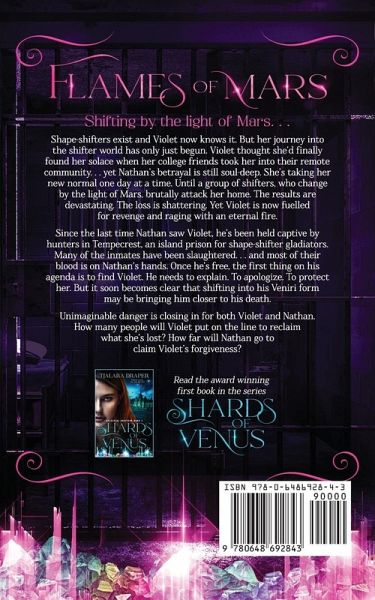 Shifting by the light of Mars. . . Shape-shifters exist and Violet now knows it. But her journey into the shifter world has only just begun. Violet thought she'd finally found her solace when her college friends took her into their remote community. . . yet Nathan's betrayal is still soul-deep. She's taking her new normal one day at a time. Until a group of shifters, who change by the light of Mars, brutally attack her home. The results are devastating. The loss is shattering. Yet Violet is now fuelled for revenge and raging with an eternal fire. Since the last time Nathan saw Violet, he's been held captive by hunters in Tempecrest, an island prison for shape-shifter gladiators. Many of the inmates have been slaughtered. . . and most of their blood is on Nathan's hands. Once he's free, the first thing on his agenda is to find Violet. He needs to explain. To apologize. To protect her. But it soon becomes clear that shifting into his Veniri form may be bringing him closer to his death. Unimaginable danger is closing in for both Violet and Nathan. How many people will Violet put on the line to reclaim what she's lost? How far will Nathan go to claim Violet's forgiveness?¿