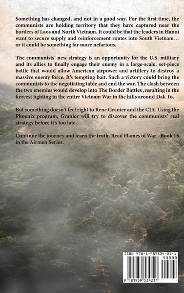 Something has changed, and not in a good way. For the first time, the communists are holding territory that they have captured near the borders of Laos and North Vietnam. It could be that the leaders in Hanoi want to secure supply and reinforcement routes into South Vietnam... or it could be something far more nefarious. The communists' new strategy is an opportunity for the U.S. military and its allies to finally engage their enemy in a large-scale, set-piece battle that would allow American airpower and artillery to destroy a massive enemy force. It's tempting bait. Such a victory could bring the communists to the negotiating table and end the war. The clash between the two enemies would develop into The Border Battles, resulting in the fiercest fighting in the entire Vietnam War in the hills around Dak To. But something doesn't feel right to Rene Granier and the CIA. Using the Phoenix program, Granier will try to discover the communists' real strategy before it's too late. Continue the journey and learn the truth. Read Flames of War - Book 16 in the Airmen Series.