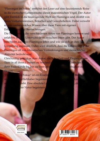 "Flamingos im Fokus" entführt den Leser auf eine faszinierende Reise in die exotischen Lebensräume dieser majestätischen Vögel. Der Autor gibt Einblick in die faszinierende Welt der Flamingos und erzählt von ihren Verhaltensweisen, Bräuchen und Gewohnheiten. Dabei verwebt er sein umfangreiches Wissen über diese Tiere mit eigenen Erfahrungen und Beobachtungen.Die Leser lernen die verschiedenen Arten von Flamingos kennen und erfahren, welche Unterschiede es zwischen ihnen gibt. Der Autor beschreibt auch, wo Flamingos leben und wie sie sich an ihre Umgebung anpassen. Dabei wird deutlich, dass die Lebensräume der Flamingos oft von klimatischen Veränderungen und menschlicher Aktivität bedroht sind.Gleichzeitig gelingt es dem Autor, die Schönheit und Eleganz dieser Tiere in all ihren Facetten zu beschreiben, von der leuchtenden Farbe ihres Federkleids bis hin zu ihrer atemberaubenden Fähigkeit zu fliegen."Flamingos im Fokus" ist ein fesselndes und informatives Buch, das nicht nur Vogelliebhaber begeistern wird, sondern jeden Leser in seinen Bann zieht. Eine absolute Leseempfehlung für alle, die sich für die Wunder der Natur begeistern können.
