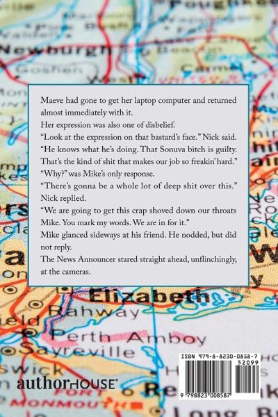 Maeve had gone to get her laptop computer and returned almost immediately with it. Her expression was also one of disbelief. "Look at the expression on that bastard's face." Nick said. "He knows what he's doing. That Sonuva bitch is guilty. That's the kind of shit that makes our job so freakin' hard." "Why?" was Mike's only response. "There's gonna be a whole lot of deep shit over this." Nick replied. "We are going to get this crap shoved down our throats Mike. You mark my words. We are in for it." Mike glanced sideways at his friend. He nodded, but did not reply. The News Announcer stared straight ahead, unflinchingly, at the cameras.
