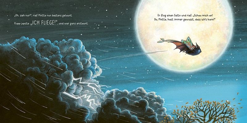 Flapp, die kleine Fledermaus, träumt davon, seinen Ast loszulassen und endlich zu fliegen. Aber die Angst hält ihn fest. Zum Glück gibt es Motte, seine beste Freundin - sie glaubt fest an ihn. Doch als ein Sturm aufzieht und Motte in Gefahr gerät, bleibt Flapp keine Wahl: Er muss ihr helfen! In diesem entscheidenden Moment entdeckt er etwas, das er nie für möglich hielt ...