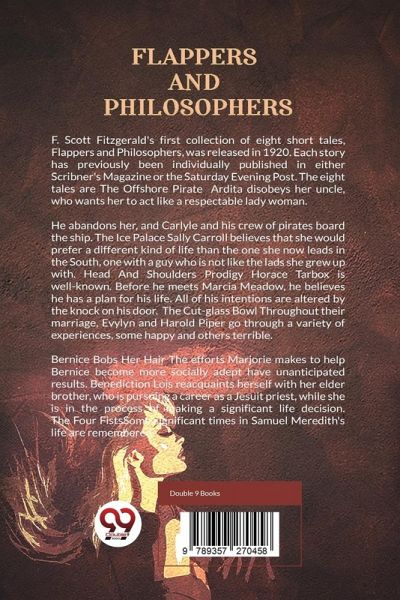F. Scott Fitzgerald's first collection of eight short tales, Flappers and Philosophers, was released in 1920. Each story has previously been individually published in either Scribner's Magazine or the Saturday Evening Post. The eight tales are The Offshore Pirate Ardita disobeys her uncle, who wants her to act like a respectable lady woman. He abandons her, and Carlyle and his crew of pirates board the ship. The Ice Palace Sally Carroll believes that she would prefer a different kind of life than the one she now leads in the South, one with a guy who is not like the lads she grew up with. Head And Shoulders Prodigy Horace Tarbox is well-known. Before he meets Marcia Meadow, he believes he has a plan for his life. All of his intentions are altered by the knock on his door. The Cut-glass Bowl Throughout their marriage, Evylyn and Harold Piper go through a variety of experiences, some happy and others terrible. Bernice Bobs Her Hair The efforts Marjorie makes to help Bernice become more socially adept have unanticipated results. Benediction Lois reacquaints herself with her elder brother, who is pursuing a career as a Jesuit priest, while she is in...