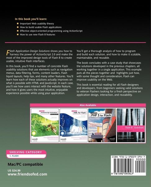This book is essential reading for all Flash designers and developers, from beginners seeking valid solutions to veteran Flashers looking for a fresh perspective on application design, interaction, and reusability.