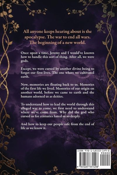 All anyone keeps hearing about is the apocalypse. The war to end all wars. The beginning of a new world. Once upon a time, Jeremy and I would've known how to handle this sort of thing. After all, we were gods. Except, we were cursed by another divine being to forget our first lives. The one where we cultivated earth. Now, memories are floating back to us. Memories of the first life we lived. Memories of our origin on another world, before we came to earth and the humans adorned us as deities. To understand how to lead the world through this alleged war to come, we first need to understand where we've come from. Why the god who cursed us for centuries hated us so deeply. And how to keep our people safe from the end of life as we know it.
