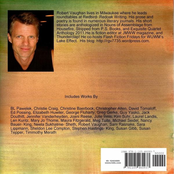 Flash Fiction Friday is a monthly radio program aired on WUWM's Lake Effect in Milwaukee, WI. Each month host Robert Vaughan selects local writers who come in, do a quick flash interview and read their flash fiction piece on the air. Then, Robert reads a national writer's piece and ties the two together with a theme that he discusses with his co-host, Stephanie Lecci. After doing this every month in 2011, Vaughan decided to create an anthology to honor the writers who shared their work on the radio program. Writers include Meg Tuite, Sheldon Lee Compton, Susan Gibb, Len Kuntz, Julie Innis, Sam Rasnake, Susan Tepper, Joani Reese, Christopher Allen, Sara Lippmann and many more.