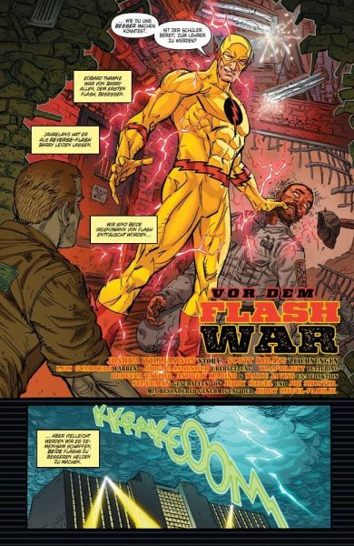 DAS RENNEN DER SUPERRASERWally West leidet unter den verlorenen Erinnerungen an ein Leben als Held und Vater, das in der neuen Realität nicht mehr stattgefunden hat. Um dieses Leben zurückzubekommen, würde er alles tun, doch damit bringt er als neuer Flash die ganze Welt in Gefahr! Barry Allen will seinen Freund aufhalten, und so kommt es zu einem Rennen, das die Realität zu vernichten droht - und nicht einmal die Justice League kann die beiden Speedster aufhalten. Als sich auch noch Zoom und die Reverse-Flash Task Force des 25. Jahrhunderts einmischen, nimmt der Krieg der Flashs seinen Lauf...Ein wuchtiger Flash-Meilenstein, geschrieben von Top-Autor Joshua Williamson (JUSTICE LEAGUE VS. SUICIDE SQUAD) und gezeichnet von den FLASH-Veteranen Howard Porter und Scott Kolins.