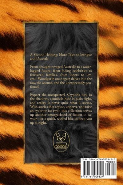 A Second Helping: More Tales to Intrigue and UnsettleFrom drought-ravaged Australia to a waterlogged future, from fading celebrities to fractured families, from loners to lovers-Woodgarth once again delves into the raw, the absurd, and the unexpectedly profound.Expect the unexpected. Cryptids lurk in the shadows, cannibals hide in plain sight, and reality is never quite what it seems. With stories that amuse, unnerve, and raise an eyebrow (or two), this collection serves up another smorgasbord of fiction to savour-or a quick, wicked bite to keep you up at night.