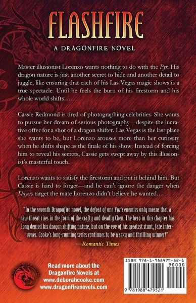 He’s lost all hope…until she changes everything. Master illusionist Lorenzo wants nothing to do with the Pyr. His dragon nature is just another secret to hide and another detail to juggle, like ensuring that each of his Las Vegas magic shows is a true spectacle. Until he feels the burn of his firestorm and his whole world shifts…. Cassie Redmond is tired of photographing celebrities. She wants to pursue her dream of serious photography—despite the lucrative offer for a shot of a dragon shifter. Las Vegas is the last place she wants to be, but Lorenzo arouses more than her curiosity when he shifts shape as the finale of his show. Instead of forcing him to reveal his secrets, Cassie gets swept away by this illusionist’s masterful touch. Lorenzo wants to satisfy the firestorm and put it behind him. But Cassie is hard to forget—and he can’t ignore the danger when Slayers target the mate Lorenzo didn’t believe he wanted…