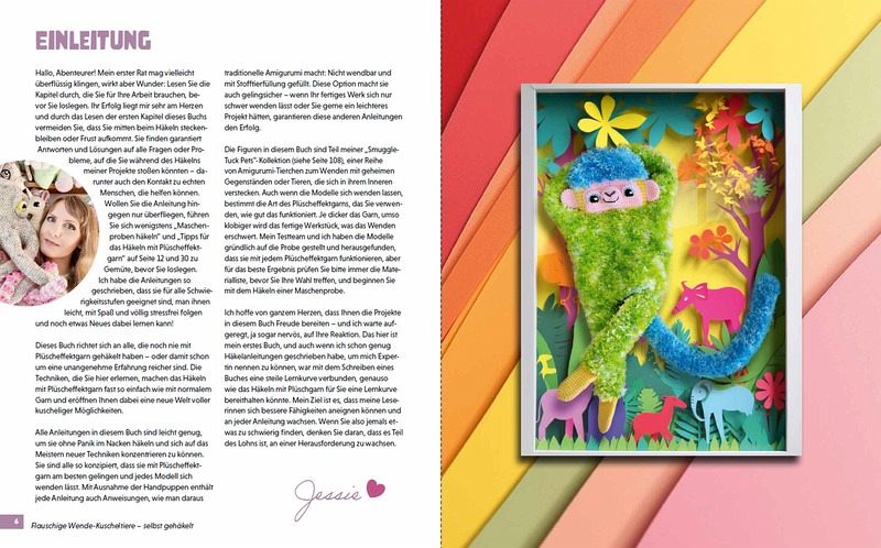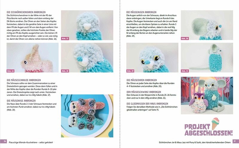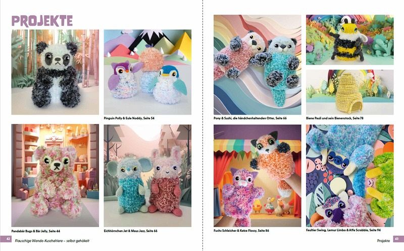 Dieses Buch behandelt ein einzigartiges Thema: aus Flauschgarn gehäkelte Kuscheltiere, die noch dazu ein verstecktes Innenleben haben. Wendet man sie von innen nach außen, taucht plötzlich ein neues Kuscheltier auf. So wird aus einem Panda ein rosa Bärchen oder aus einem Pinguin eine Eule und aus einem Eichhörnchen und einer Maus wird ein niedliches, händchenhaltendes Otterpärchen.Welche Teile dafür wie gehäkelt werden müssen, wie sie zusammengesetzt werden und worauf besonders geachtet werden muss, erklärt der umfangreiche Einleitungsteil. Versierte Häklerinnen wissen um die Schwierigkeit, mit Flauschgarn zu häkeln, da die Maschen nicht so gut erkannt werden können wie bei glattem Garn. Die Autorin beweist allerdings eindrucksvoll, wie kinderleicht es dennoch sein kann. Das Endergebnis - die kuschelweichen Wendetiere - laden durch ihre plüschige Oberfläche zum Kuscheln und Liebhaben ein.
