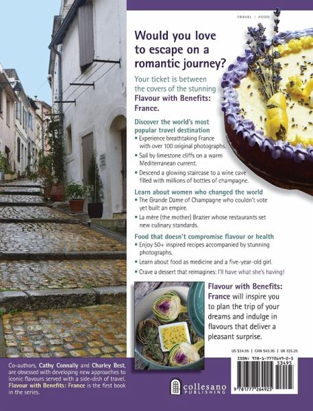 Would you love to escape on a romantic journey? Your ticket is between the covers of the award-winning Flavour with Benefits: France. Discover the world's most popular travel destination ¿ Experience breathtaking France with over 100 original photographs. ¿ Sail by limestone cliffs on a warm Mediterranean current. ¿ Descend a glowing staircase to a wine cave filled with millions of bottles of champagne. Learn about women who changed the world ¿ The Grande Dame of Champagne who couldn't vote yet built an empire. ¿ La mère (the mother) Brazier whose restaurants set new culinary standards. Food that doesn't compromise flavour or health ¿ Enjoy 50+ inspired recipes accompanied by stunning photographs. ¿ Learn about food as medicine and a five-year-old girl. ¿ Crave a dessert that reimagines: I'll have what she's having! Flavour with Benefits: France will inspire you to plan the trip of your dreams and indulge in flavours that deliver a pleasant surprise. Recipient of the 2022 CIPA-EVVY Herb Tabak Non-Fiction award; 2023 Nautilus Silver Award in Food, Cooking, & Healthy Eating (small press) and the 2023 Eric Hoffer Award - First Horizon Award. Co-authors, Cathy Connally and Charley Best, are obsessed with developing new approaches to gourmet comfort food served with a side-dish of travel. Flavour with Benefits: France is the first book in the series.