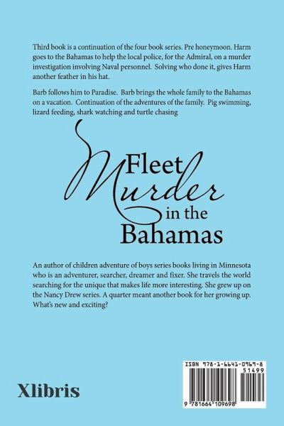 Third book is a continuation of the four book series. Pre honeymoon. Harm goes to the Bahamas to help the local police, for the Admiral, on a murder investigation involving Naval personnel. Solving who done it, gives Harm another feather in his hat. Barb follows him to Paradise. Barb brings the whole family to the Bahamas on a vacation. Continuation of the adventures of the family. Pig swimming, lizard feeding, shark watching and turtle chasing