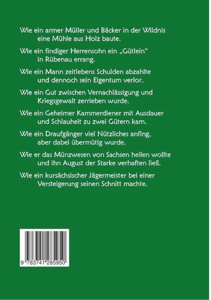 "An diesem Ortte ist vor deßen keine Hoffstatt noch Wohnung, sondern nur allein lauter Holz gewesen." So heißt es in einem kurfürstlichen Dokument über die Region am Erzgebirgskamm. Das änderte sich, als Kurfürst August ab 1560 das Holz dieser Wälder für den Bergbau zu nutzen begann. Menschliches Leben kehrte ein in die wildromantische Bergwelt.Der reiche Schatz an alten Handschriften im Sächsischen Hauptstaatsarchiv Dresden machte es möglich, die Geschichte von Rübenau als eines der neu entstandenen Dörfer zu rekonstruieren und dabei die ersten Ansiedler gewissermaßen zu neuem Leben zu erwecken. Geschildert und dokumentarisch belegt wird,wie ein armer Müller und Bäcker in der Wildnis eine Mühle aus Holz baute,wie ein findiger Herrensohn ein "Gütlein" in Rübenau errang,wie ein Mann zeitlebens Schulden abzahlte und dennoch sein Eigentum verlor,wie ein Gut zwischen Vernachlässigung und Kriegsgewalt zerrieben wurde,wie ein Geheimer Kammerdiener mit Ausdauer und Schlauheit zu zwei Gütern kam,wie ein draufgängerischer Gutsherr viel Nützliches anfing, aber sich dabei überschätzte,wie er das Münzwesen von Sachsen heilen wollte und ihn August der Starke verhaften ließ und ein kursächsischer Hof- und Jägermeister bei der Versteigerung zweier Güter seinen Schnitt machte.