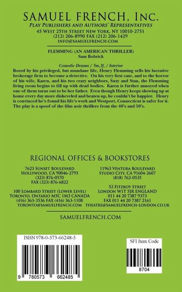 Comedic Drama / 5m,3f, / Interior Bored by his privileged, but mundane life, Henry Flemming sells his lucrative brokerage firm to become a detective. On his very first case, and to the horror of his wife, Karen, and his two crazy neighbors, Suzy and Stan, the Flemming living room begins to fill up with dead bodies. Karen is further annoyed when one of them turns out to be her father. Even though Henry keeps showing up at home every day more disheveled and beaten up, he couldn't be happier.