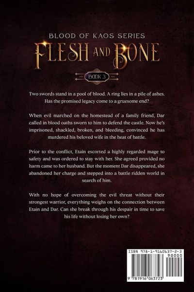 Two swords stand in a pool of blood. A ring lies in a pile of ashes. Has the promised legacy come to a gruesome end? When evil marched on the homestead of a family friend, Dar called in blood oaths sworn to him to defend the castle. Now he's imprisoned, shackled, broken, and bleeding, convinced he has murdered his beloved wife in the heat of battle. Prior to the conflict, Etain escorted a highly regarded mage to safety and was ordered to stay with her. She agreed provided no harm came to her husband. But the moment Dar disappeared, she abandoned her charge and stepped into a battle ridden world in search of him. With no hope of overcoming the evil threat without their strongest warrior, everything weighs on the connection between Etain and Dar. Can she break through his despair in time to save his life without losing her own?