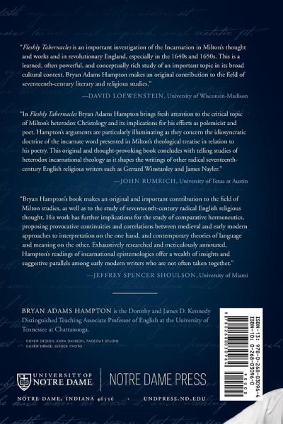 In Fleshly Tabernacles, Bryan Hampton examines John Milton's imaginative engagement with, and theological passion for, the Incarnation. As aesthetic symbol, theological event, and narrative picture of humanity's potential, the Incarnation profoundly governs the way Milton structures his 1645 Poems, ponders the holy office of the pulpit, reflects on the ends of speech and language, interprets sacred scripture or secular texts, and engages in the radical politics of the Civil War and Interregnum. Richly drawing upon the disciplines of historical and postmodern theology, philosophical hermeneutics, theological aesthetics, and literary theory, Fleshly Tabernacles pursues the wide-ranging implications of the heterodox, perfectionist strain in Milton's Christology. Hampton illustrates how vibrant Christologies generated and shaped particular brands of anticlericalism, theories of reading and language, and political commitments of English nonconformist sects during the turbulent decades of the seventeenth century. Ranters and Seekers, Diggers and Quakers, Fifth monarchists and some Anabaptists-many of those identified with these radical groups proclaim that the Incarnation is primarily understood, not as a singular event of antiquity, but as a present eruption and charged manifestation within the life of the individual believer, such that faithful believers become "fleshly tabernacles" housing the Divine.