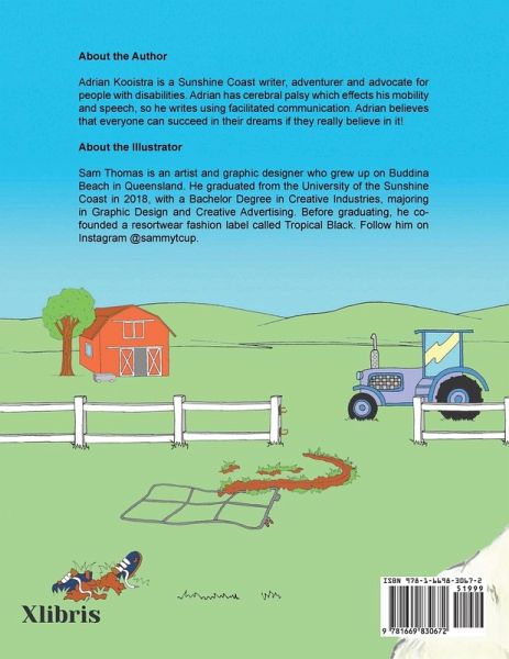 About the Author Adrian Kooistra is a Sunshine Coast writer, adventurer and advocate for people with disabilities. Adrian has cerebral palsy which effects his mobility and speech, so he writes using facilitated communication. Adrian believes that everyone can succeed in their dreams if they really believe in it! About the Illustrator Sam Thomas is an artist and graphic designer who grew up on Buddina Beach in Queensland. He graduated from the University of the Sunshine Coast in 2018, with a Bachelor Degree in Creative Industries, majoring in Graphic Design and Creative Advertising. Before graduating, he co-founded a resortwear fashion label called Tropical Black. Follow him on Instagram @sammytcup.
