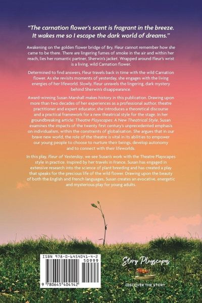 "The carnation flower's scent is fragrant in the breeze. It wakes me so I escape the dark world of dreams." Awakening on the golden flower bridge of Bry, Fleur cannot remember how she came to be there. There are lingering fumes of smoke in the air and within her reach, lies her romantic partner, Sherwin's jacket. Wrapped around Fleur's wrist is a living, wild Carnation flower. Determined to find answers, Fleur travels back in time with the wild Carnation flower. As she revisits moments of yesterday, she engages with the living energies of her lifeworld. Slowly, Fleur unravels the lingering, dark mystery behind Sherwin's disappearance. Award-winning Susan Marshall makes history in this publication. Drawing upon more than two decades of her experiences as a professional author, theatre practitioner and expert educator, she introduces a theoretical discourse and a practical framework for a new theatrical style for the stage. In her groundbreaking article: Theatre Playscapes: A New Theatrical Style, Susan examines the impacts of the twenty first century's unprecedented emphasis on individualism, within the constraints of globalisation. She argues that in our brave new world, the role of the theatre is vital in its abilities to empower our young people to choose to nurture their beings, develop autonomy and to connect with their lifeworlds. In this play, Fleur of Yesterday, we see Susan's work with the Theatre Playscapes style in practice. Inspired by her travels in France, Susan has engaged in extensive research into the science of plant breeding and has created a play that speaks for the precious life of the wild flower. Drawing upon the beauty of both the English and French languages, Susan creates an evocative, energetic and mysterious play for young adults.