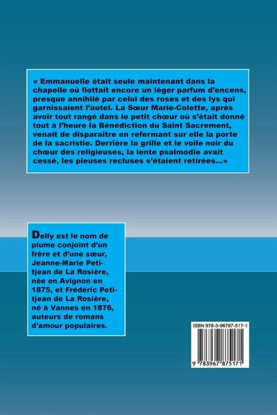 Emmanuelle était seule maintenant dans la chapelle où flottait encore un léger parfum d'encens, presque annihilé par celui des roses et des lys qui garnissaient l'autel. La S¿ur Marie-Colette, après avoir tout rangé dans le petit ch¿ur où s'était donné tout à l'heure la Bénédiction du Saint Sacrement, venait de disparaître en refermant sur elle la porte de la sacristie. Derrière la grille et le voile noir du ch¿ur des religieuses, la lente psalmodie avait cessé, les pieuses recluses s'étaient retirées...