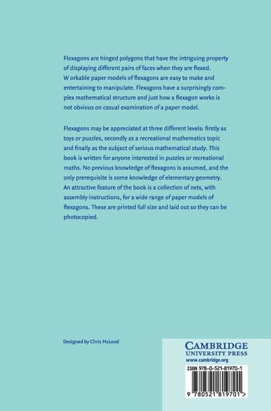 Flexagons, paper models that can be bent in different ways to change their shape, are easy to make and work in surprising ways. This book contains numerous diagrams that the reader can photocopy and use to construct a variety of fascinating flexagons. The author also explains the mathematics behind these amazing creations. Although knowledge of the technical details requires a mathematical background, the models can be made and used by anyone. Flexagons appeals to all readers interested in puzzles and recreational mathematics.
