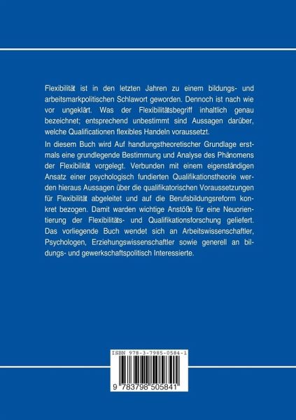 1. Zur Einführung: Flexibilität und Interesse.- 2. Ansätze und Ergebnisse bisheriger Flexibilitätsforschung.- 2.1 Grundrichtungen der Flexibilitätsforschung.- 2.2 Die deskriptive Flexibilitätsforschung.- 2.3 Flexibilität als "extra-funktionale Fertigkeit" oder "prozeßunab-hängige Qualifikation".- 2.4 Flexibilität als soziale Anpassungshaltung.- 2.5 Schlüsselqualifikationen als Voraussetzung für Flexibilität.- 2.6 Wissenschaftliche Qualifikationen als Grundlage von Flexibilität.- 2.7 Resümee: Stand und Ergebnisse der Flexibilitätsforschung.- 3. Methodologische und theoretische Grundlagen eines psychologisch ausgerichteten Forschungsansatzes.- 3.1 Methodologische Überlegungen zur Qualifikations- und Flexibilitätsforschung.- 3.2 Kurzdarstellung des Handlungsstrukturmodells.- 4. Qualifikationen und ihre Komponenten.- 4.1 Qualifikationen als habituelle Dispositionen.- 4.2 Qualifikationskomponenten (Kenntnisse, Fähigkeiten und Fertigkeiten).- 4.3 Einstellungen und Gewohnheiten als "angelagerte" Dispositionen.- 4.4 Graphische Darstellung des Dispositionsgefüges.- 4.5 Ebenenspezifische Qualifikationskomponenten.- 5. Flexibilität als Handlungsmerkmal.- 5.1 Grundsätzliche Überlegungen zur Bestimmung von Flexibilität.- 5.2 Handlungsflexibilität und flexibilitätserfordernde Situationen..- 5.3 "Grundformen" flexibilitätserf ordernder Situationen.- 5.4 Ein hypothetisches Modell des logischen Ablaufs flexibler Handlungen.- 5.6 Flexibilität, Disponibilität und Mobilität.- 6. Beiträge zur Analyse flexiblen Handelns und dessen Komponenten.- 6.1 Vorbemerkung.- 6.2 Handlungsflexibilität und Problemlösen.- 6.3 Exkurs: Zum Flexibilitätsverständnis in psychologischen Problemlösetheorien.- 6.4 Strategiewechsel bei flexiblem Handeln.- 6.5 ZurBildung und Funktion heuristischer Strategien.- 6.6 Heuristische Strategiebildung und intellektuelle Regulation.- 6.7 Hinweis eines faktorenanalytischen Modells.- 6.8 "Beweglichkeit des Denkens" als Faktor flexiblen Handelns.- 6.9 Zur Bedeutung des operativen Abbildsystems für Handlungsflexibilität.- 6.10 Zur Funktion von Begriffen im Rahmen flexibler Handlungen. ....- 6.11 Zur Bereichsspezifik von Handlungsflexibilität.- 6.12 Transfer und Neuaneignung im Prozeß flexiblen Handelns.- 7. Qualifikatorische Voraussetzungen für Handlungsflexibilität.- 7.1 Vorbemerkung.- 7.2 Zum Charakter der qualifikatorischen Voraussetzungen für Handlungsflexibilität.- 7.3 Zur Bedeutung intellektueller Qualifikationskomponenten.- 7.4 Konkretisierung der für Handlungsflexibilität vorauszusetzenden Qualität von Qualifikationen.- 7.5 Zusammengefaßte qualifikatorische Bestimmung.- 7.6 Handlungsflexibilität in der automatisierten Produktion: das Beispiel des Meßwartenfahrers.- 7.7 Arbeitsbedingungen als Determinante für Handlungsflexibilität.- 8. Motivations- und Einstellungsaspekte von Handlungsflexibilität.- 8.1 Zum Stellenwert von Motivations-und Einstellungsaspekten.- 8.2 Flexibilität, Motivation und Einstellung zur Arbeit.- 8.3 Motivation, Einstellung und Zielmodifikation.- 8.4 Einstellung zur eigenen Handlungskompetenz.- 9. Handlungsflexibilität und Berufsbildungsreform - Das Berufsgrundbildungsjahr.- 9.1 Vorbemerkung.- 9.2 Die gegenwärtige betriebliche Ausbildungspraxis unter dem Aspekt.- der Flexibilitätsförderung.- 9.3 Das Berufsgrundbildungsjahr als Reflex auf erhöhte Flexibilitätsanforderungen.- 9.4 Flexibilitätsförderung durch das BGJ? Das Beispiel des Modellversuchs Salzgitter.- 10. Flexibilität, Handlungstheorie und gesellschaftliche Perspektive.-10.1 Vorbemerkung.- 10.2 Zur Kritik der Kritischen Psychologie am handlungstheoretischen Ansatz.- 10.3 Problemlösendes Denken, orientierende und begreifende Erkenntnis bei K. Holzkamp.- 10.4 Flexibilität und Bildung.