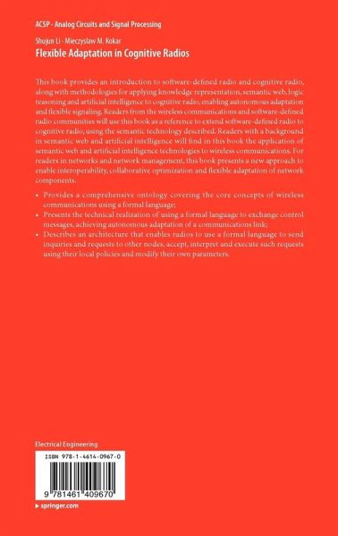 This book provides an introduction to software-defined radio and cognitive radio, along with methodologies for applying knowledge representation, semantic web, logic reasoning and artificial intelligence to cognitive radio, enabling autonomous adaptation and flexible signaling. Readers from the wireless communications and software-defined radio communities will use this book as a reference to extend software-defined radio to cognitive radio, using the semantic technology described. Readers with a background in semantic web and artificial intelligence will find in this book the application of semantic web and artificial intelligence technologies to wireless communications. For readers in networks and network management, this book presents a new approach to enable interoperability, collaborative optimization and flexible adaptation of network components.