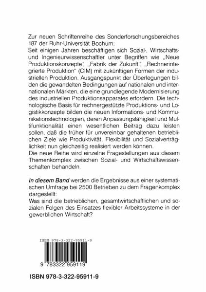 J osef Schmid I Ulrich Widmaier Neue Infonnationstechnologien und darauf aufbauende flexible Ar beitssysteme in der industriellen Produktion werden seit einigen Jahren un ter Wissenschaftlern, Politikern, Arbeitgebern und Arbeitnehmern intensiv diskutiert. Bis heute werden die Folgen des massierten Einzugs des Com puters in die Arbeitswelt zwiespältig eingeschätzt: Sehen die einen das Ende der Arbeitsteilung am Horizont, so drohen für die anderen Neo taylorismus und Arbeitslosigkeit durch Automatisierung. Selbst eine vom Bundesminister für Forschung und Technologie ins Leben gerufene Exper tenkommission aus Forschung und Praxis konstatiert bezogen auf die computerintegrierte Fertigung (CIM) sowohl ein beachtliches Maß an Risi ken wie auch Chancen. Eine der unseres Erachtens elementaren Ursachen für die Divergenz der Be urteilungen bzw. für die Schwierigkeit, verläßliche Aussagen über Auswir kungen und Entwicklungstrends zu gewinnen, stellt der Mangel an reprä sentativen empirischen Daten dar. Dies hängt eng mit der in der Realität vorfindbaren Unübersichtlichkeit an Einsatzfonnen, Wechselwirkungen und Folgen von Technik und Arbeit in den Betrieben zusammen, die man in der Literatur meist mit Hilfe von Fallstudien und/oder begrenzten Stichproben zu erfassen sucht. Angesichts der erhöhten Wahlfreiheiten und Entkoppe lungstendenzen von Technikeinsatz und dessen Folgen gerät diese Methode an ihre Grenzen, da schon im Nachbarbetrieb eine andere Kombination von Technikausstattung und Arbeitsorganisation anzutreffen sein kann.