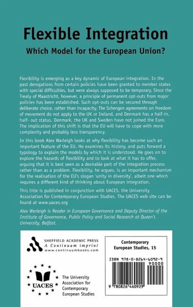 Flexibility is emerging as a key dynamic of European integration. This shift towards flexibility has major implications. The EU will have to cope with more complexity and less transparency. It also affects the way in which European integration is viewed since it makes a state-like outcome to the process far less likely. Alex Warleigh looks at why flexibility has become such an important feature of the EU. He examines its history, and puts forward a typology to explain the models by which it is understood. He goes on to explore the hazards of flexibility and to look at what it has to offer, arguing that it is best seen as a desirable part of the integration process rather than as a problem. Flexibility, he argues is an important mechanism for the realization of the EU's slogan "unity in diversity".