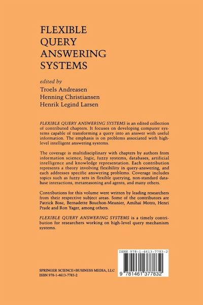 Flexible Query Answering Systems is an edited collection of contributed chapters. It focuses on developing computer systems capable of transforming a query into an answer with useful information. The emphasis is on problems associated with high-level intelligent answering systems.