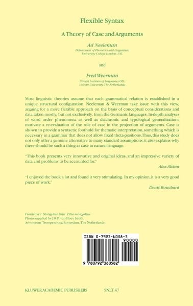 Most linguistic theories assume that each grammatical relation is established in a unique structural configuration. Neeleman and Weerman take issue with this view, arguing for a more flexible approach on the basis of conceptual considerations and data taken mostly, but not exclusively, from the Germanic languages. In-depth analyses of word order phenomena as well as diachronic and typological generalizations motivate a re-evaluation of the role of case in the projection of arguments. Case is shown to provide a syntactic foothold for thematic interpretation, something which is necessary in a grammar that does not allow fixed theta-positions. Thus, this study does not only offer a genuine alternative to many standard assumptions, it also explains why there should be such a thing as case in natural language.