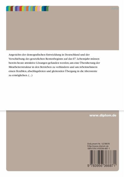 Angesichts der demografischen Entwicklung in Deutschland und der Verschiebung des gesetzlichen Rentenbeginns auf das 67. Lebensjahr müssen bereits heute attraktive Lösungen gefunden werden, um eine Überalterung der Mitarbeiterstruktur in den Betrieben zu verhindern und um Arbeitnehmern einen flexiblen, abschlagsfreien und gleitenden Übergang in die Altersrente zu ermöglichen.